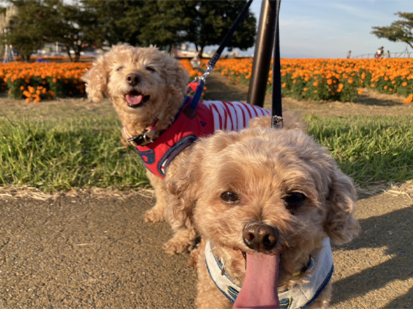 朝は尻尾を振っておはようの挨拶、夜は同じ布団で一緒に寝る。